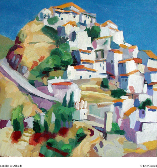 A painting of the hill top village Canillas in the Andalusian mountains in the south of Spain close to the town of Competa. I have visited this area several times making paintings and drawings - a lovely, if not very hot, place.