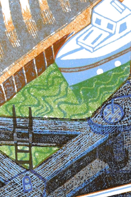 This is a hi-res pdf version of the linocut "Cardiff Barrage". It is a secure file which means you can only print from it. You will need the password, which you'll find in the "For your information" file.